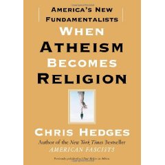 Uno dei più noti giornalisti statunitensi, Chris Hedges, collaboratore per diversi anni del New York Times, vincitore nel 2002 dell’“Amnesty International Global Award for Human Rights”, docente alla New York University e senior fellow al The Nation Institute di New York City , ha pubblicato qualche mese fa un libro intitolato “When Atheism Becomes Religion: America’s New Fundamentalists” («Quando l’ateismo diventa una religione: i nuovi americani fondamentalisti»). Anch’egli ritiene -come riportato in varie recensioni pubblicate su internet- che il gruppetto dei “New Atheist”, capitanato da Richard Dawkins, Christopher Hitchens e Sam Harris, e rappresentato in Italia da alcune associazioni neo-razionaliste, non portino argomenti morali su o contro la religione, ma piuttosto vogliano creare una nuova forma di fondamentalismo che cerca di permeare la società basandosi su idee come la superiorità morale dei non credenti e l’onnipotenza della ragione umana. Nel suo precedente libro “I Don’t Believe in atheist” (Free Press 2008), criticava la mentalità radicale che infuria contro la religione e la fede. Hedges individua i pilastri del nuovo sistema di credenze ateo, rivelando che le rigorose e rigide regole osservate da questi fondamentalisti somiglino molto a quelle osservate da coloro che essi attaccano. Hedges frantuma l’assalto di questi gruppi fondamentalisti alla religione e non risparmia certo critiche ai fondamentalisti religiosi, chiendendo alle voci moderate di entrare nel dibattito (lo stesso che ha fatto Mons. Ravasi quando ha definito queste associazioni “folkloristiche”). Hedges definisce i “Nuovi atei” delle persone “inquietanti” e i loro scritti “noiosi” e spesso “idioti e razzisti”. Non si capisce ancora se il progressivo declino culturale, l’aumento della depressione, della solitudine e dell’uso di sostituti della realtà, come alcool e stupefacenti, siano causa o conseguenza di questo inquietante aumento del “fondamentalismo senza dio”.