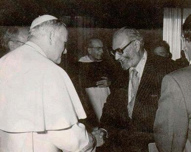 Il fisico, biologo molecolare e premio Noble Maurice Wilkins con Giovanni Paolo II