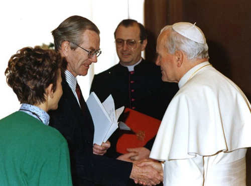 Il genetista Jérôme Lejeune con Giovanni Paolo II
