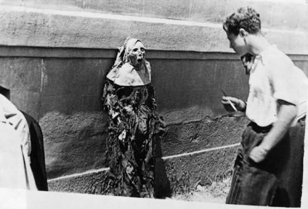 Il 17 marzo, l’ateo Manuel Azaña scriveva al cognato: «Ho perso il conto delle località in cui hanno bruciato chiese e conventi». Allo scoppio della guerra civile erano ben 239 i luoghi di culto dati alle fiamme. Innumerevoli i roghi di quadri confessionali precedentemente accatastati nelle piazze, le violazione dei tabernacoli e delle ostie consacrate, sparse a terra per essere calpestate. Moltissimi i cadaveri di parroci e vescovi disseppelliti, la tassazione dei funerali cattolici (talvolta impedimento alla loro stessa celebrazione), il divieto per i simboli cristiani sulle tombe, la proibizione della processione pasquale, l’equiparazione della Settimana Santa a una «riunione clandestina» con conseguenti arresti, l‘impedimento delle prime comunioni dei bambini, cani lasciati liberi di scorrazzare nelle città con un crocifisso al collare. «Non occorre essere credenti – puntualizza Ranzato – per sentire e capire quanto dolore e quanto risentimento provocassero queste ferite alle coscienze religiose, cui spesso si accompagnarono altre grandi e piccole vessazioni, come il divieto o la tassazione delle immagini esposte nella pubblica via, o dei rintocchi di campana». Si passa poi a descrivere della «leggenda delle caramelle avvelenate»: si fece infatti diffondere la voce (ovviamente infondata) che suore e dame cattoliche andavano distribuendo tra i bimbi bonbon letali che avevano già prodotto un’ecatombe di bambini. Le folle di anticlericali aggredirono così monache e pie donne giudicate sospettate di aver provveduto a quegli avvelenamenti, il tutto nell’ormai consueta indifferenza delle autorità di polizia. Nella foto la riesumazione di un cadavere di una suora arsa viva.