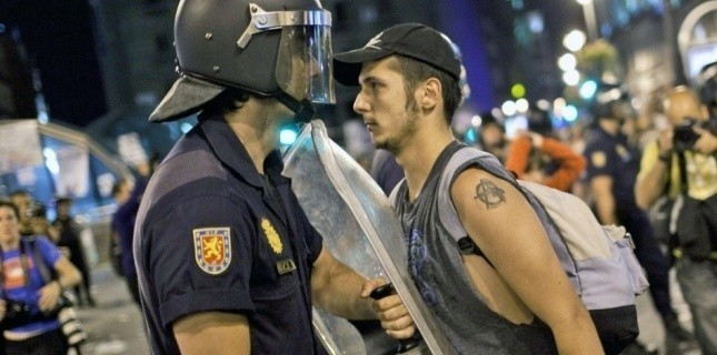La polizia fa bene a picchiarli, così come ha fatto bene a picchiare questo ragazzo e questa ragazza che camminavano per strada dopo la semplice domanda della ragazza “que pasa?” (“che succede?”) -min. 1.30-, oppure a lasciare un giornalista a terra per le manganellate solo perché aveva osato filmare la scena di cui prima. -poco dopo nel video-