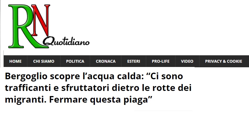 Sei sicuro di aver letto l’articolo? Sei sicuro di aver capito che a fianco della doverosa assistenza ai migranti in mare ci sono trafficanti che lucrano sulle loro spalle? Sei sicuro che il Papa sia stato assimilato a Salvini?