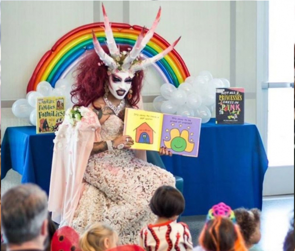Eh, pure tu, che vuoi farci? Si vede che alcuni genitori stanno più tranquilli a passare un pomeriggio con un transessuale in compagnia dei figli piuttosto che lasciarli in parrocchia dal prete. Specie negli USA. Specie di questi tempi.