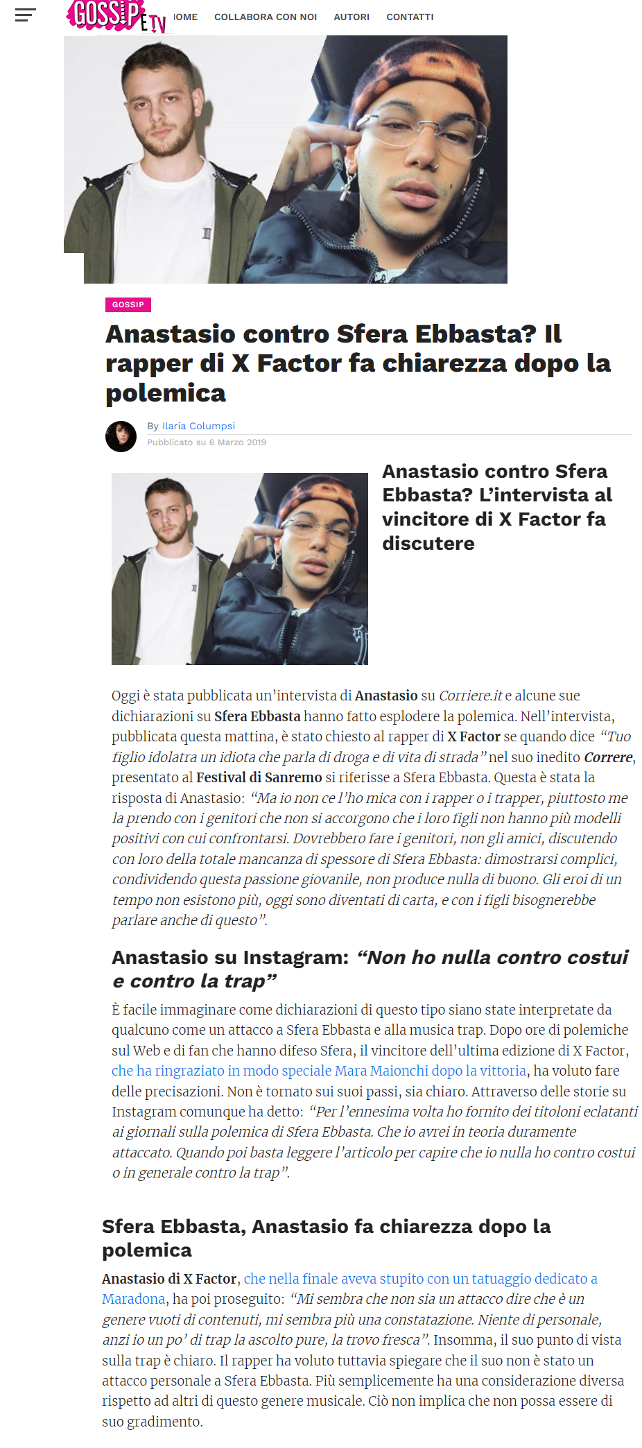 Al contrario del classico “artista unico” prodotto da questo tipo di talent, Anastasio ha qualcosa di interessante da dire.