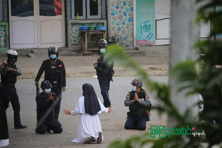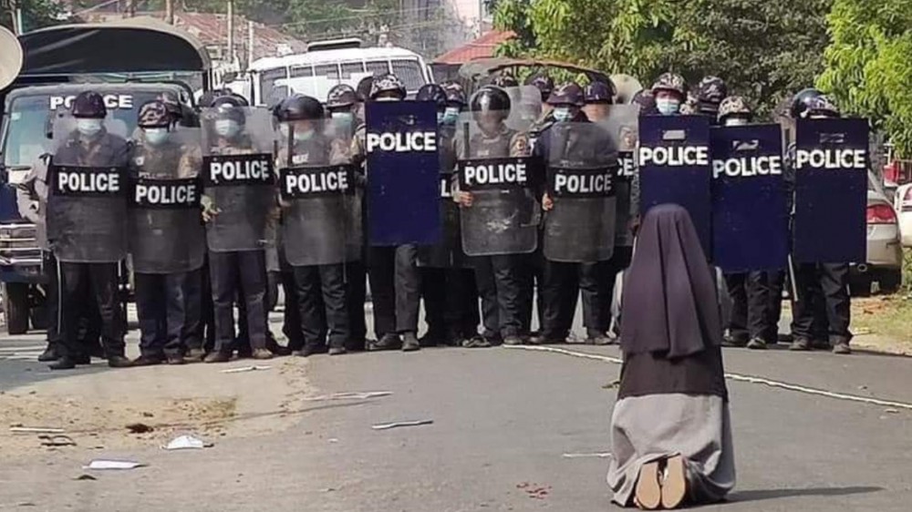 La notizia della tragica situazione birmana è arrivata in tutto il mondo grazie all’immagine potente di suor Ann Nu Thawng, la religiosa cattolica saveriana inginocchiatasi di fronte agli agenti per salvare i giovani durante le manifestazioni pacifiche pro democrazia.