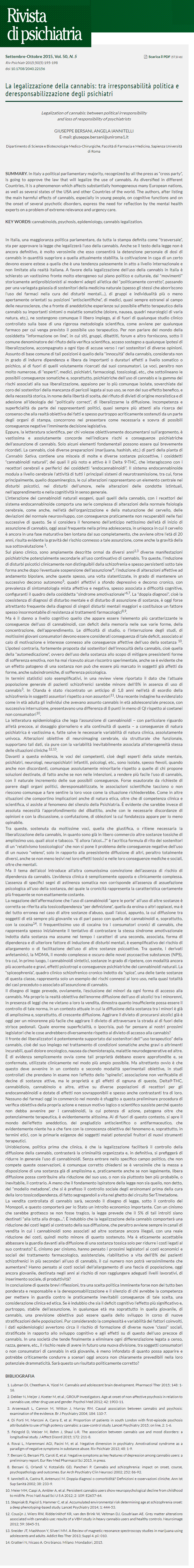 Eppure, fa notare la celebre rivista medica, «la letteratura scientifica, per chi volesse obiettivamente documentarsi sull’argomento, è vastissima e assolutamente concorde nell’indicare rischi e conseguenze psichiatriche dell’assunzione di cannabis […]. La letteratura epidemiologica che lega l’assunzione di cannabinoidi – con particolare riguardo all’età precoce, al dosaggio giornaliero e alla continuità di questa – a conseguenze di natura psichiatrica è vastissima e, fatte salve le necessarie variabilità di natura clinica, assolutamente univoca».