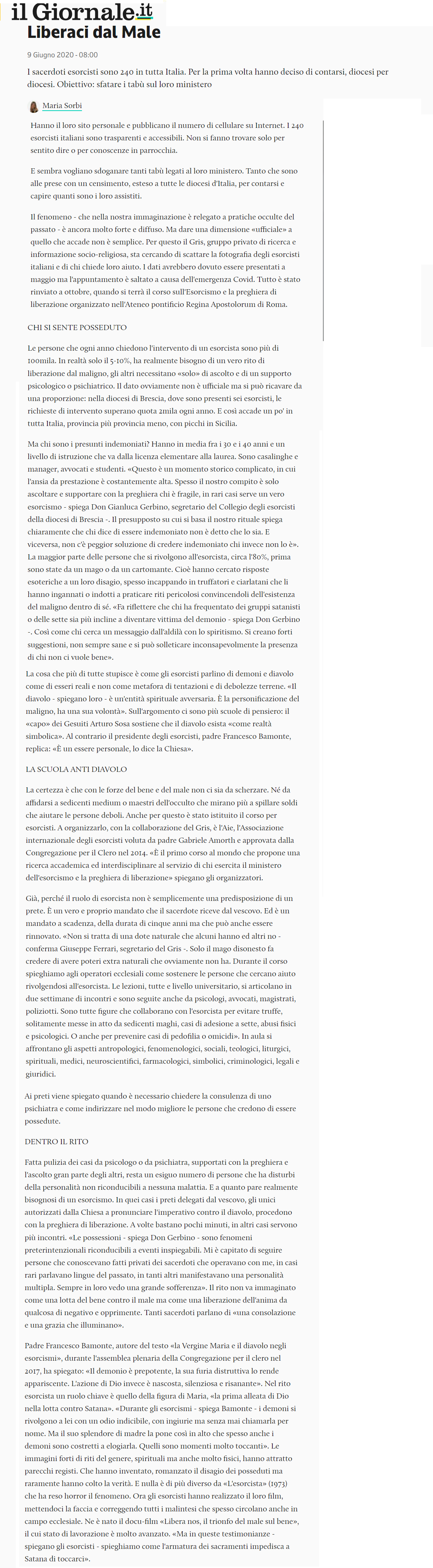 «Spesso il nostro compito è ascoltare e supportare con la preghiera chi è fragile, in rari casi serve un vero esorcismo», ha spiegato ad esempio don Gianluca Gerbino, segretario del Collegio degli esorcisti di Brescia. «Chi dice di essere indemoniato non è detto che lo sia e viceversa non c’è peggior soluzione di credere indemoniato chi invece non lo è».