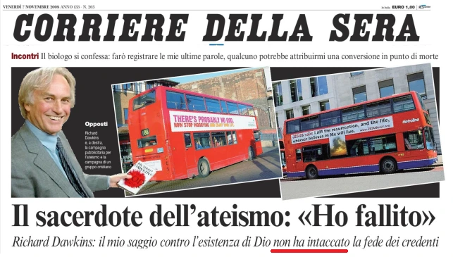 Nonostante le promettenti promesse il tentativo è naufragato fragorosamente, come d’altra parte ammesso dallo stesso leader religioso Richard Dawkins già nel 2008.