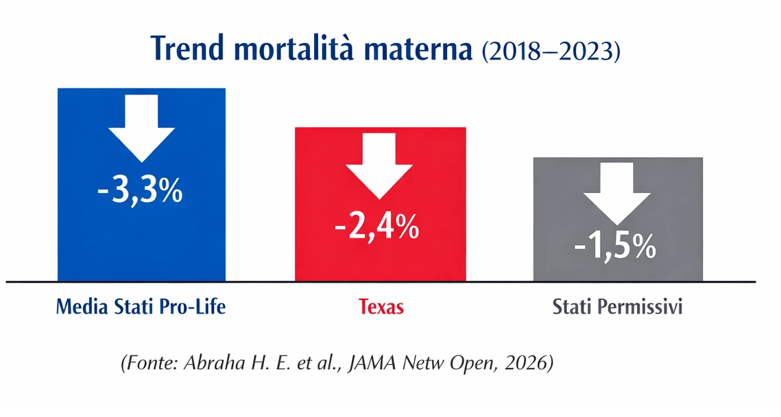 Ad esempio, in Texas — dopo l’introduzione della cosiddetta “Heartbeat Law” — il tasso di mortalità materna è diminuito di circa il 2,4%, mentre in altri Stati con leggi simili il calo ha raggiunto il 3,3%.